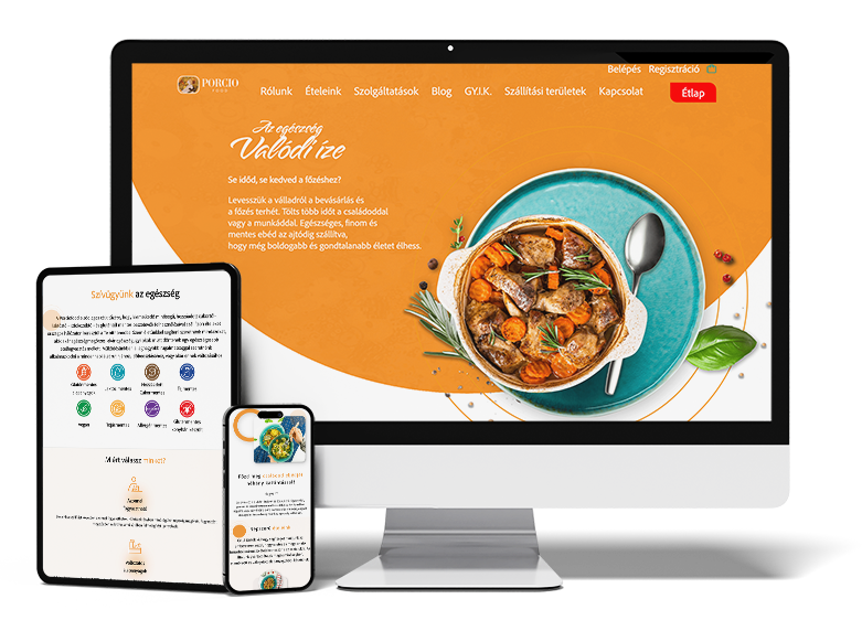 Friss, étvágygerjesztő megjelenés, strukturált menürendszer, gyors navigáció. A Porció Food weboldala egyszerű, de céltudatos: eladni, étvágyat csinálni, és könnyűvé tenni a választást. A kihívás az volt, hogy az ételfotók és az étlapok vizuálisan is eladhatóak legyenek .